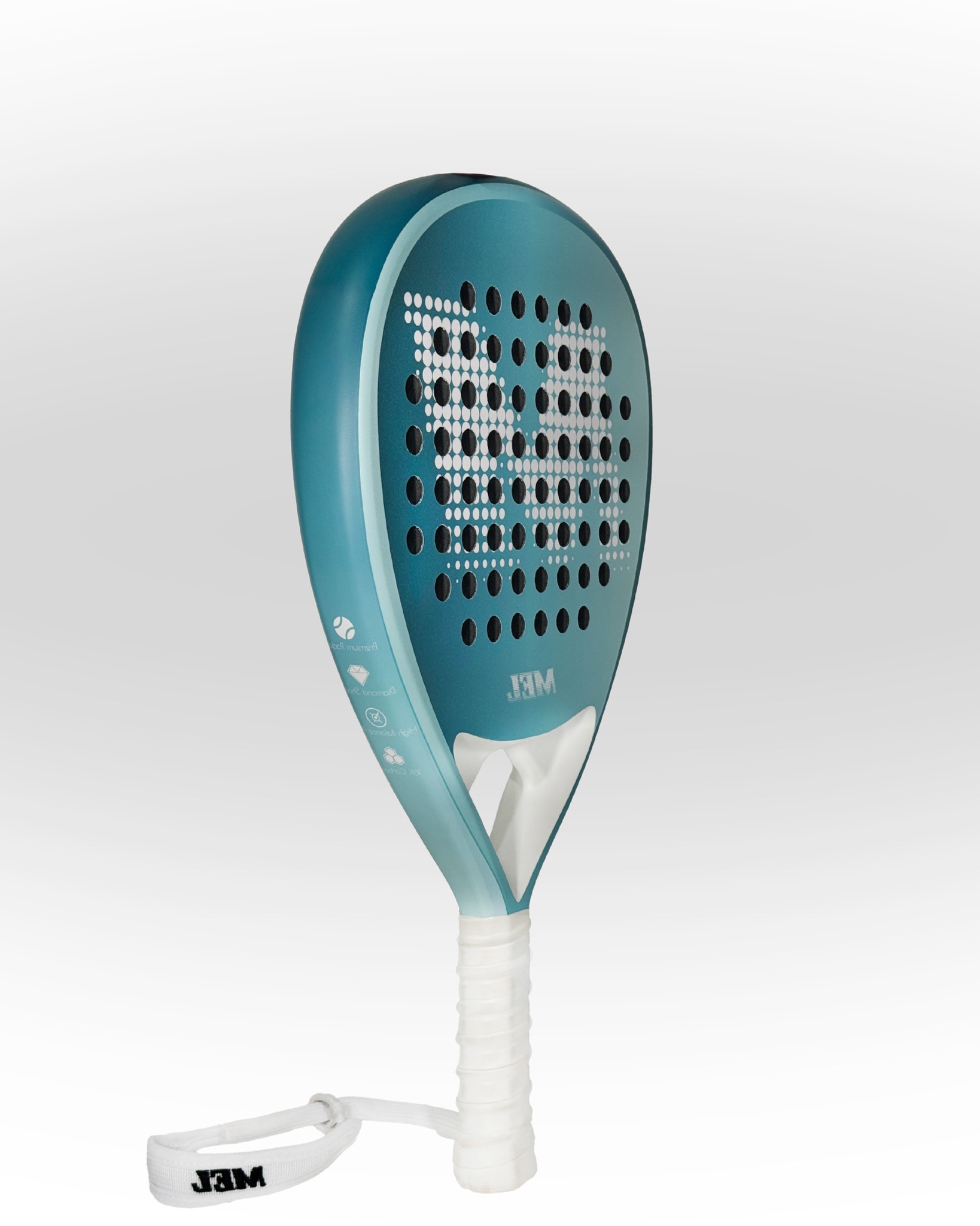 המחבט עשוי מחומרים פרימיום –18K Carbon מלא ובנוי בצורת יהלום המעניקה כוח מתפרץ ודיוק חד. הוא שוקל כ־360 גרם, מצויד בליבת MLD Medium EVA ליציבות ושליטה מאוזנת, ומשטחו כולל טקסטורה מחוספסת ליצירת ספינים חדים. ידית ארגונומית בולמת זעזועים ורצועת יד מרופדת משלימות חוויית משחק נוחה ומדויקת.